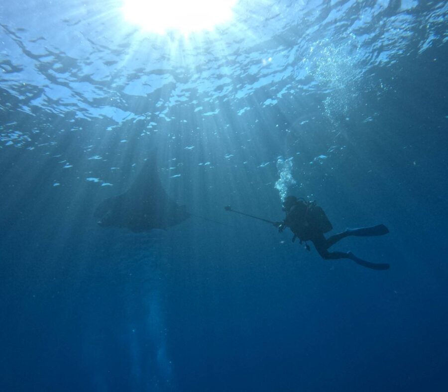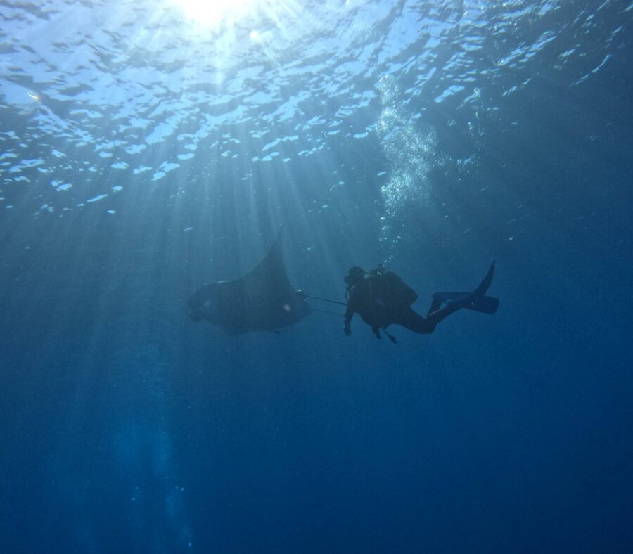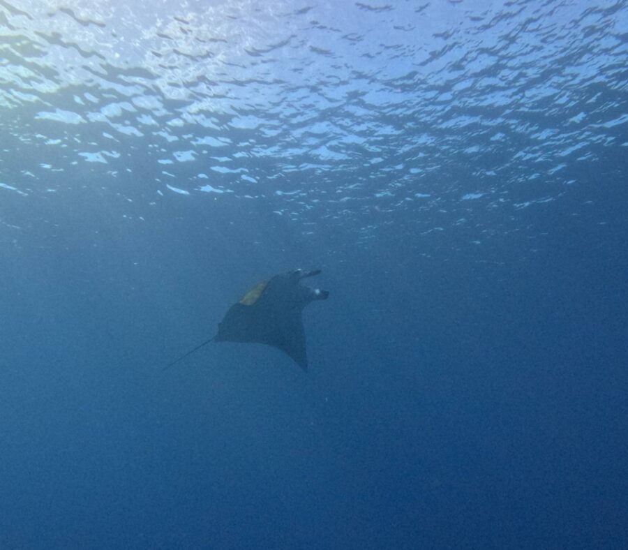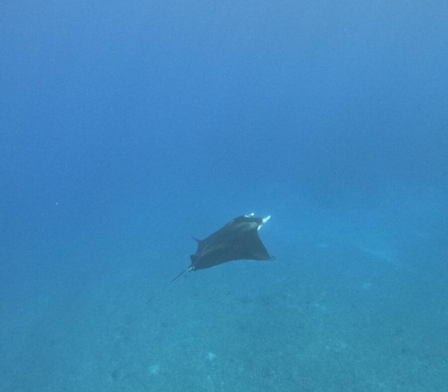 島を沿って移動するマンタが、南からも北から、行ったり来たり。
