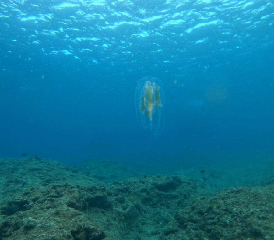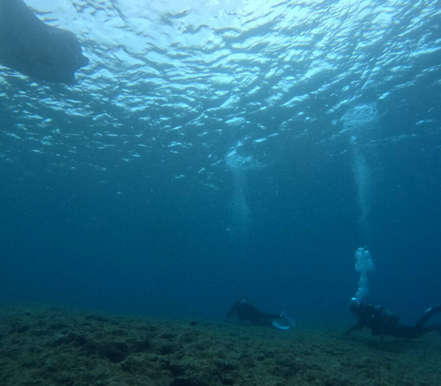 浅い場所では、うねりの影響を受けて、岩にしがみつくのも大変💦