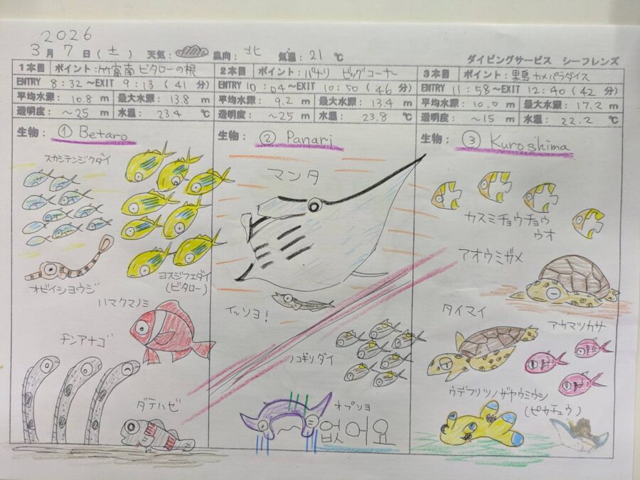 Bチーム : マンタは見なかったから、全員見れていないと思ってる。