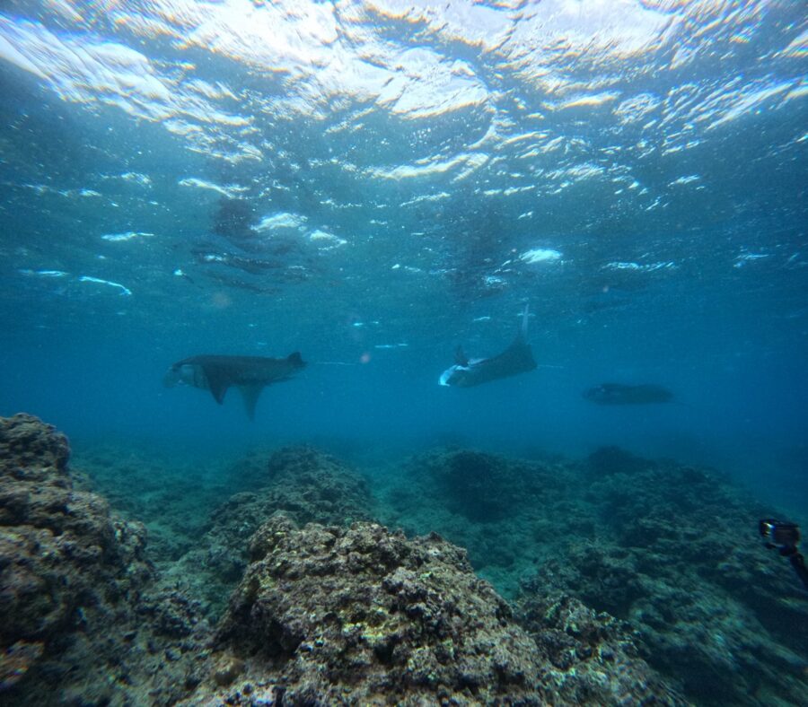 水面からひょこっと出ているマンタの背ビレを見つけたら、