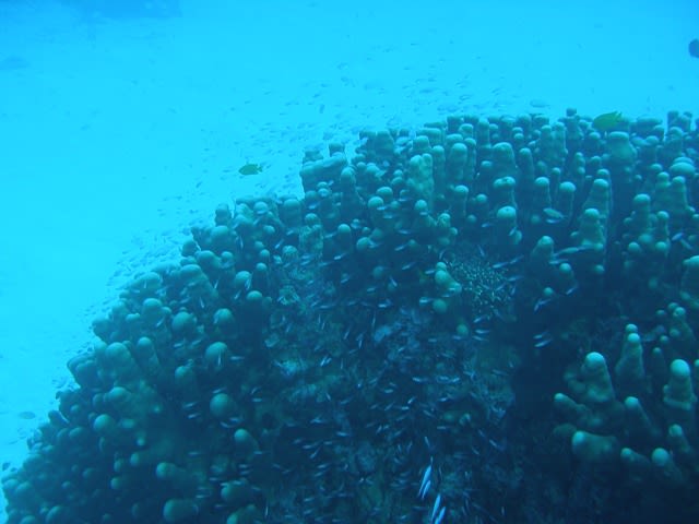 ジャガイモの根では、ユビエダ珊瑚に群れるスカシテンジクダイ&デバスズメ