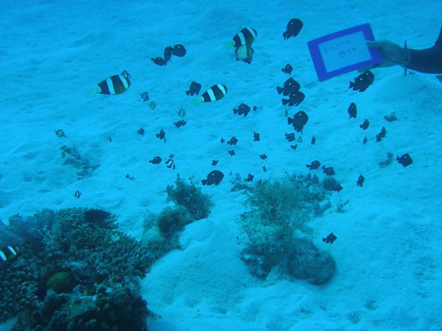 一本目は、水中に慣れるためにあまり移動しないでヨスジフエダイ&クマノミ各種