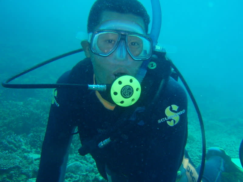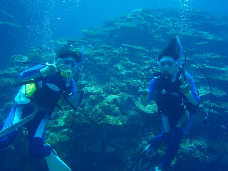 今日の体験チームは、高校の同級生の2人組と、黒島や波照間島などで体験ダイビングやスノーケルを経験した男性1人の計3名様!