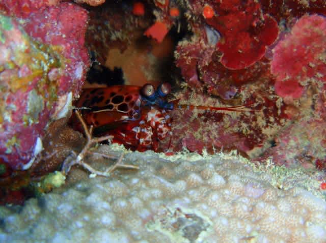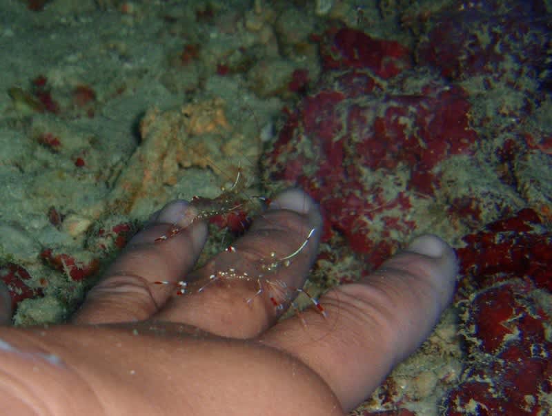 穴の中を覗くとクリーニングシュリンプがいっぱい!!!