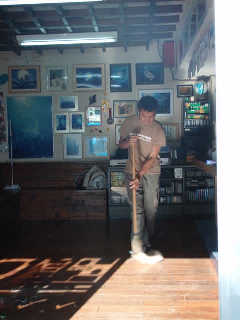 だして、広くなったお店の中をみんなで掃き掃除です!!