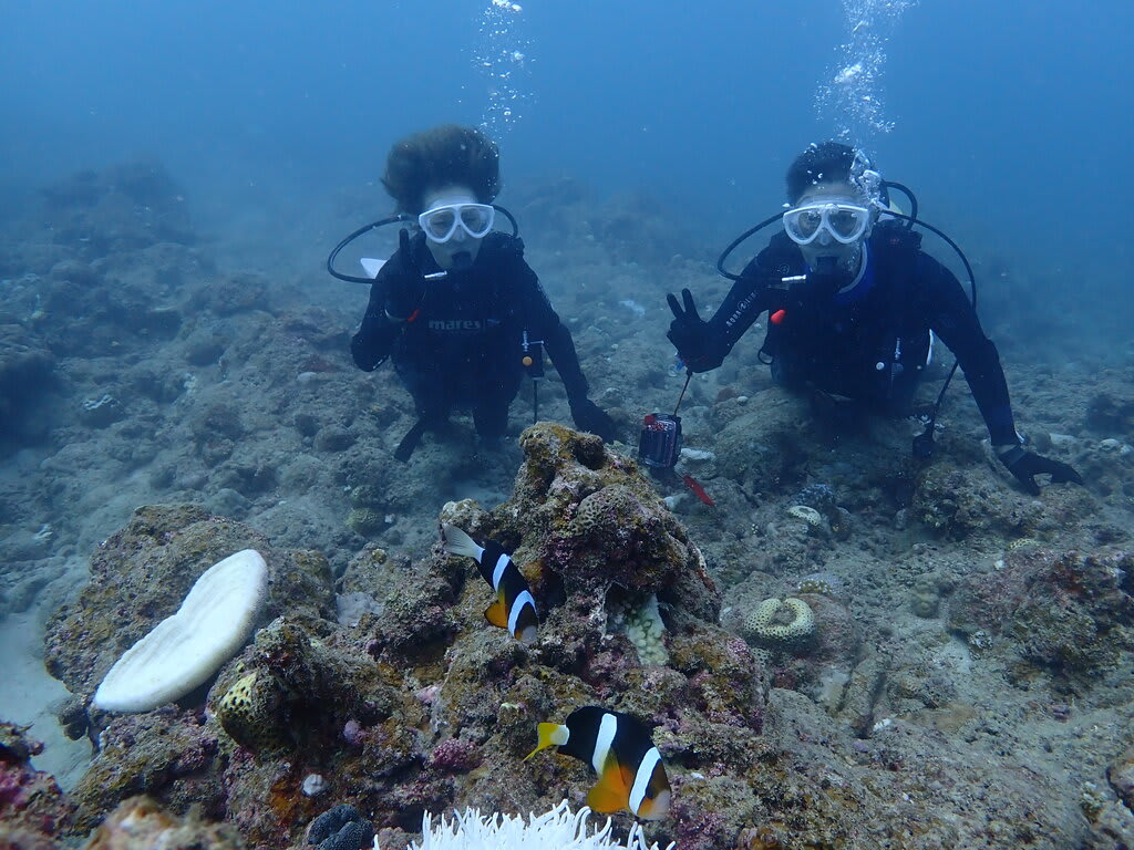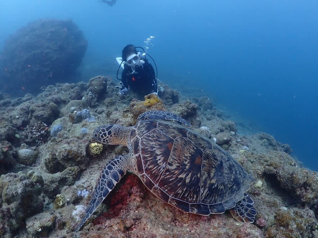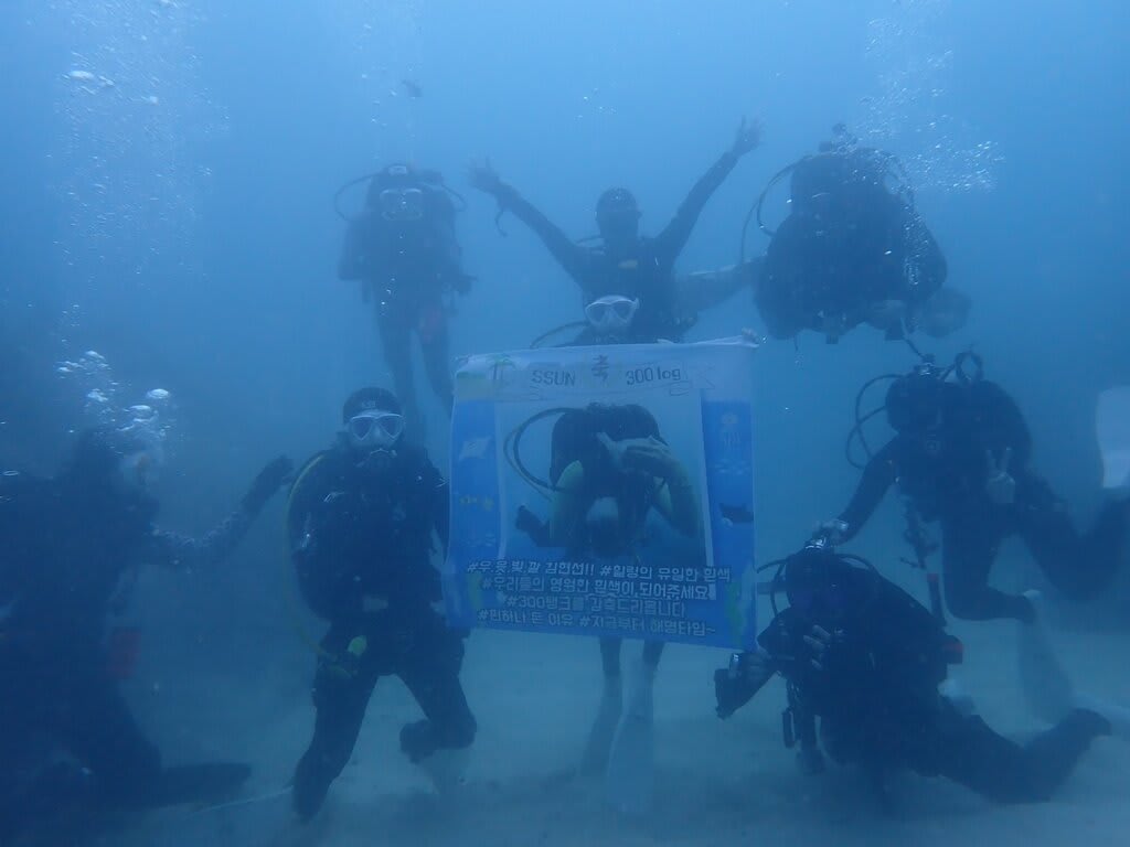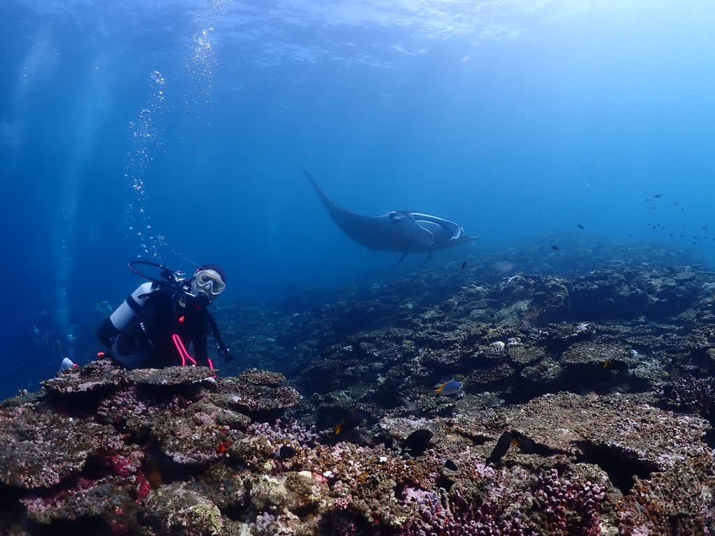 マンタさんと一緒に300本の記念ダイブをお祝い!!