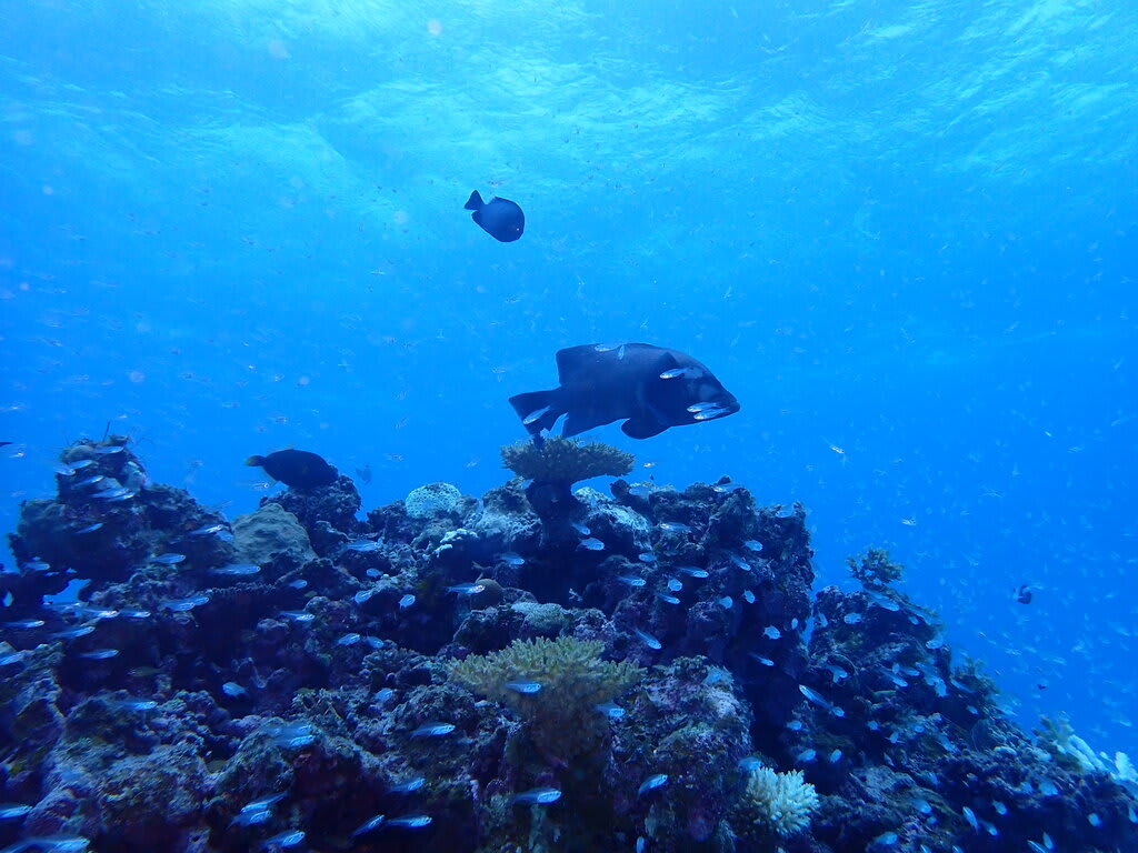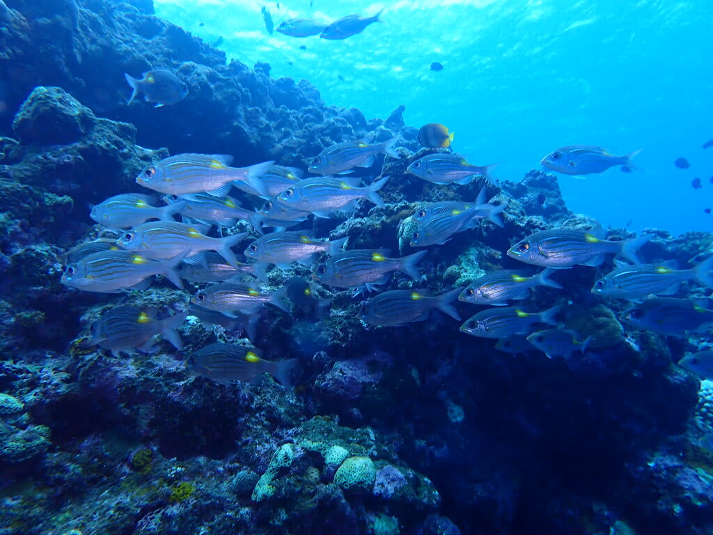 カスミチョウチョウウオたちも、青い海で気持ちよさそうでした♬