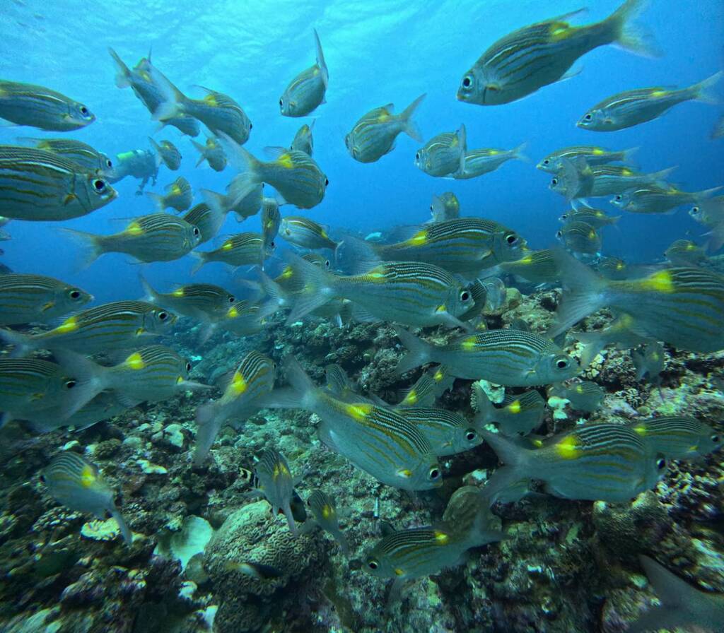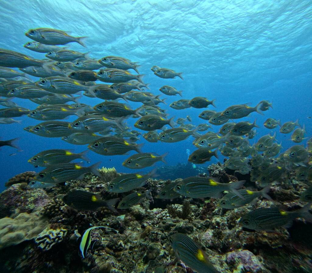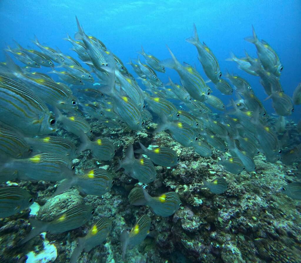 見たもの:ノコギリダイ群れ、アオウミガメ、