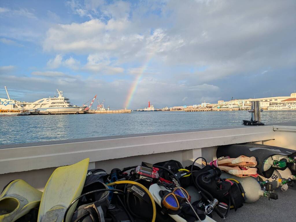 太陽が出て、青空が広がり、虹も架かり、さわやかな風。