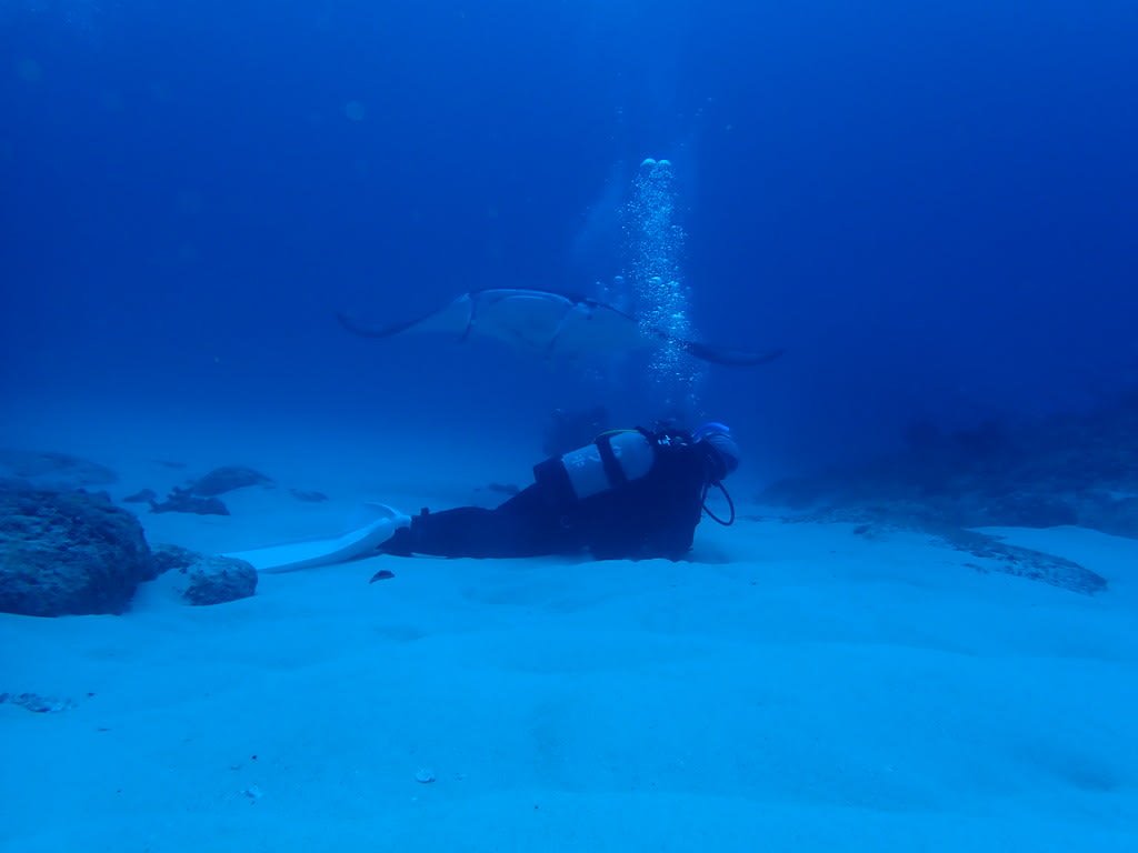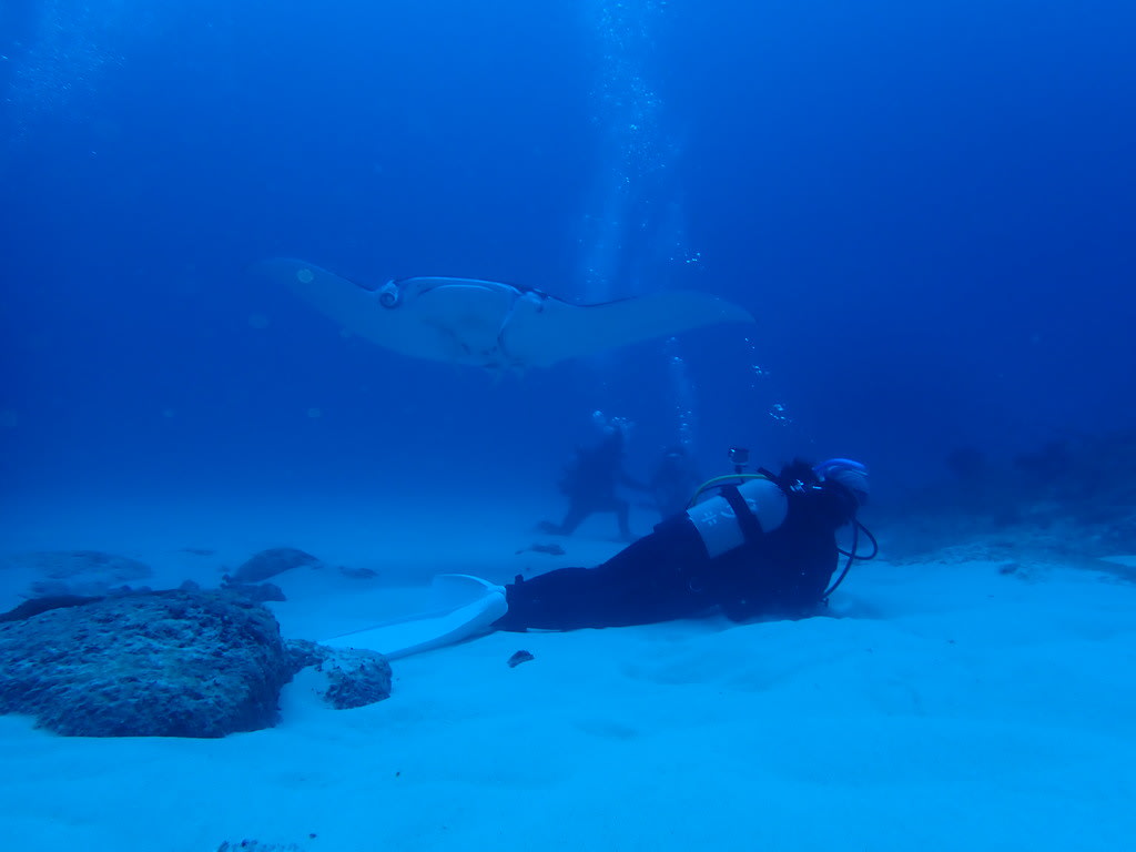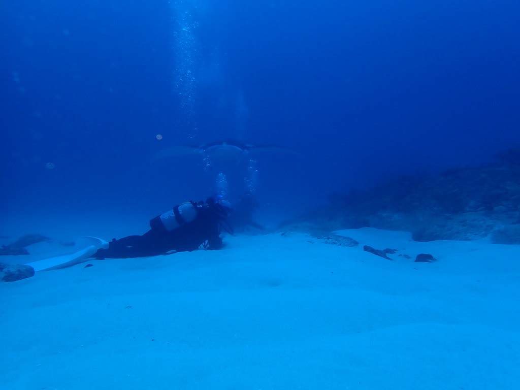マンタがすれすれのところまでやってきた。