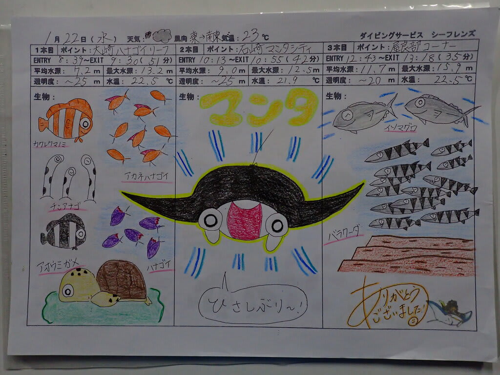 三ツ石には、マンタが20枚くらいが乱舞してたらしい・・・