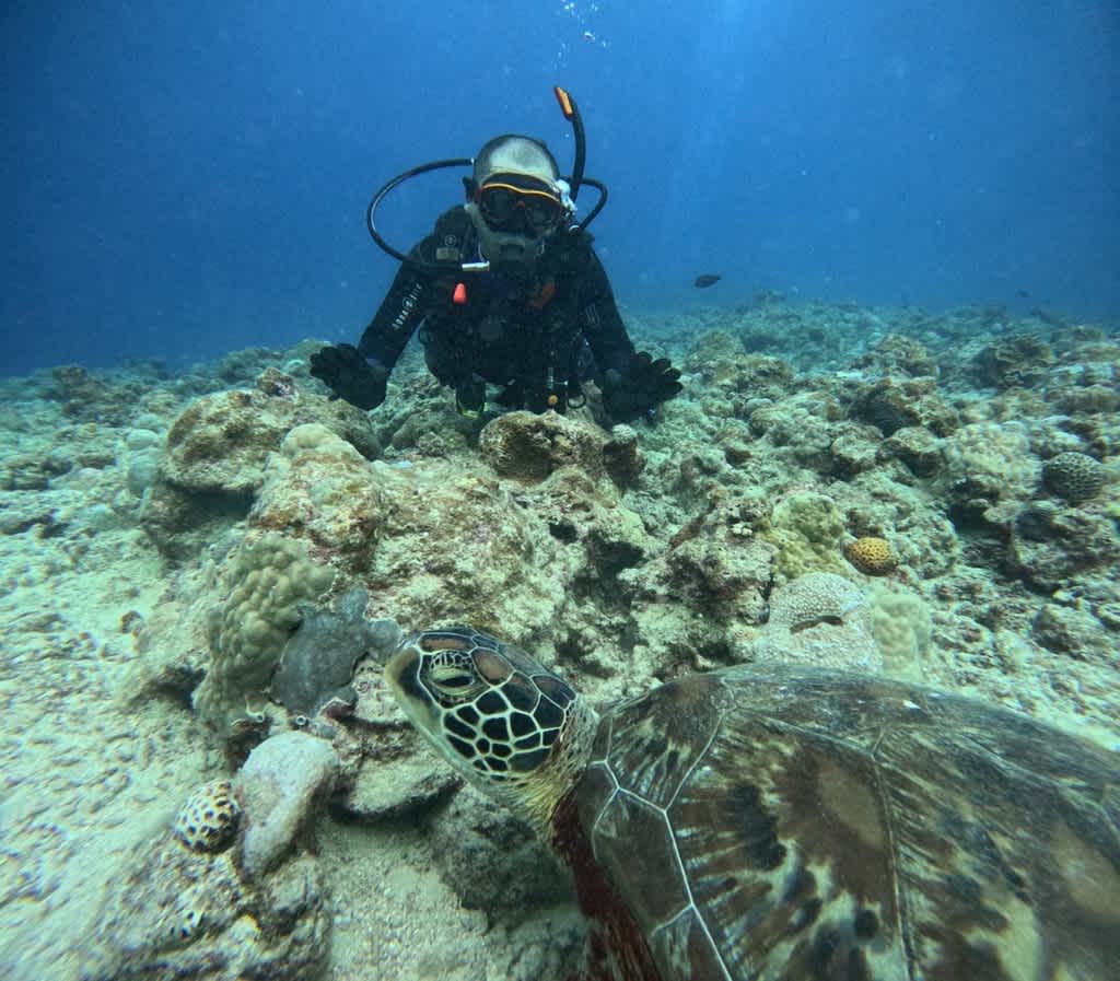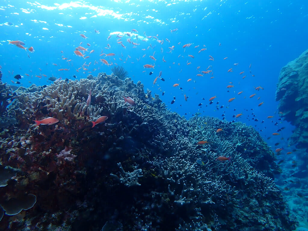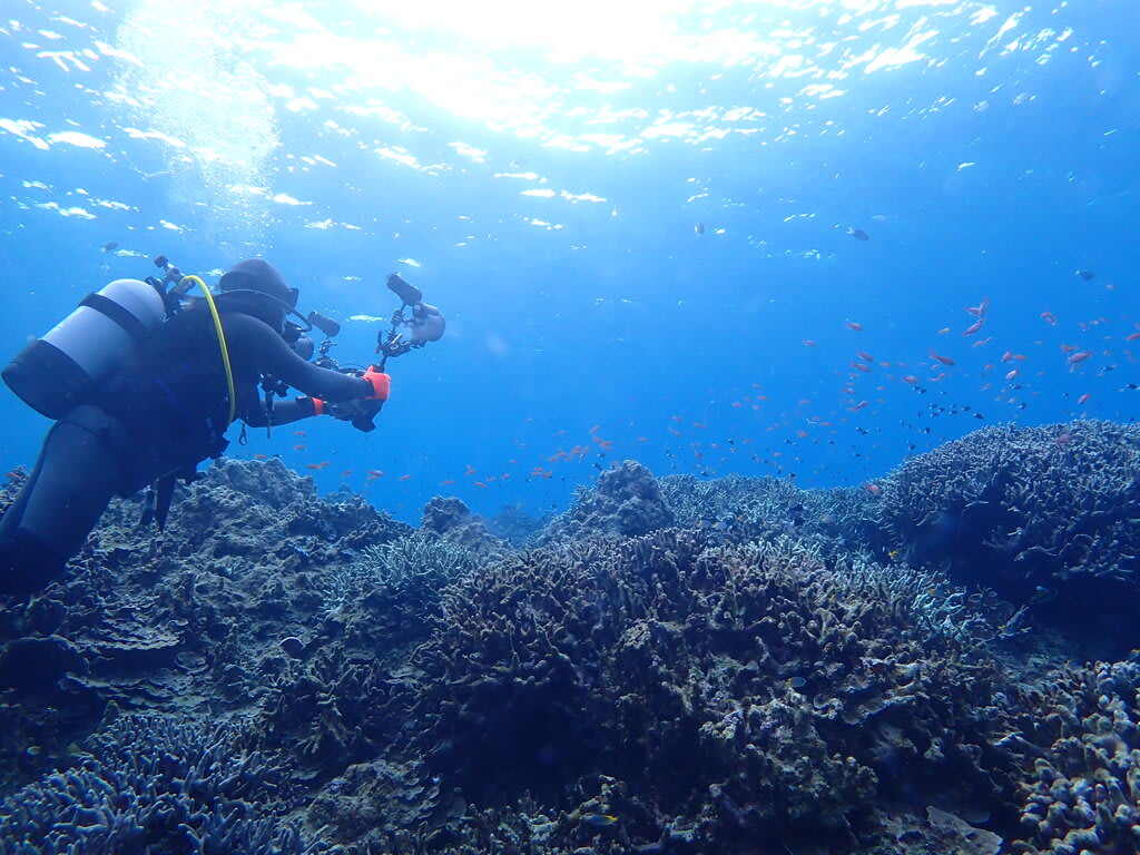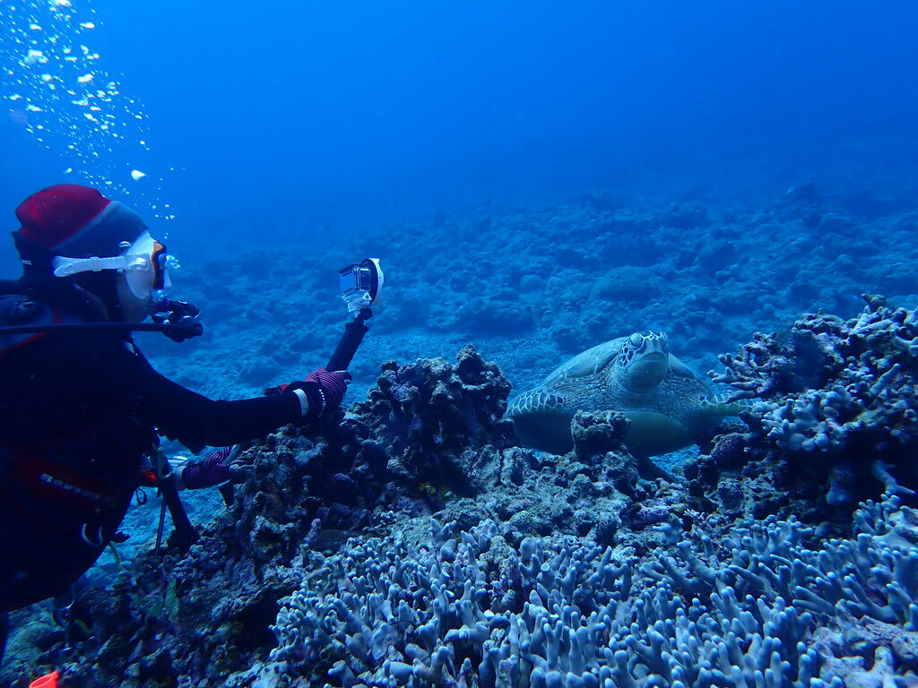 サンゴ、ハナゴイ、アオウミガメなど浅いエリアで、のんびりダイビングを。