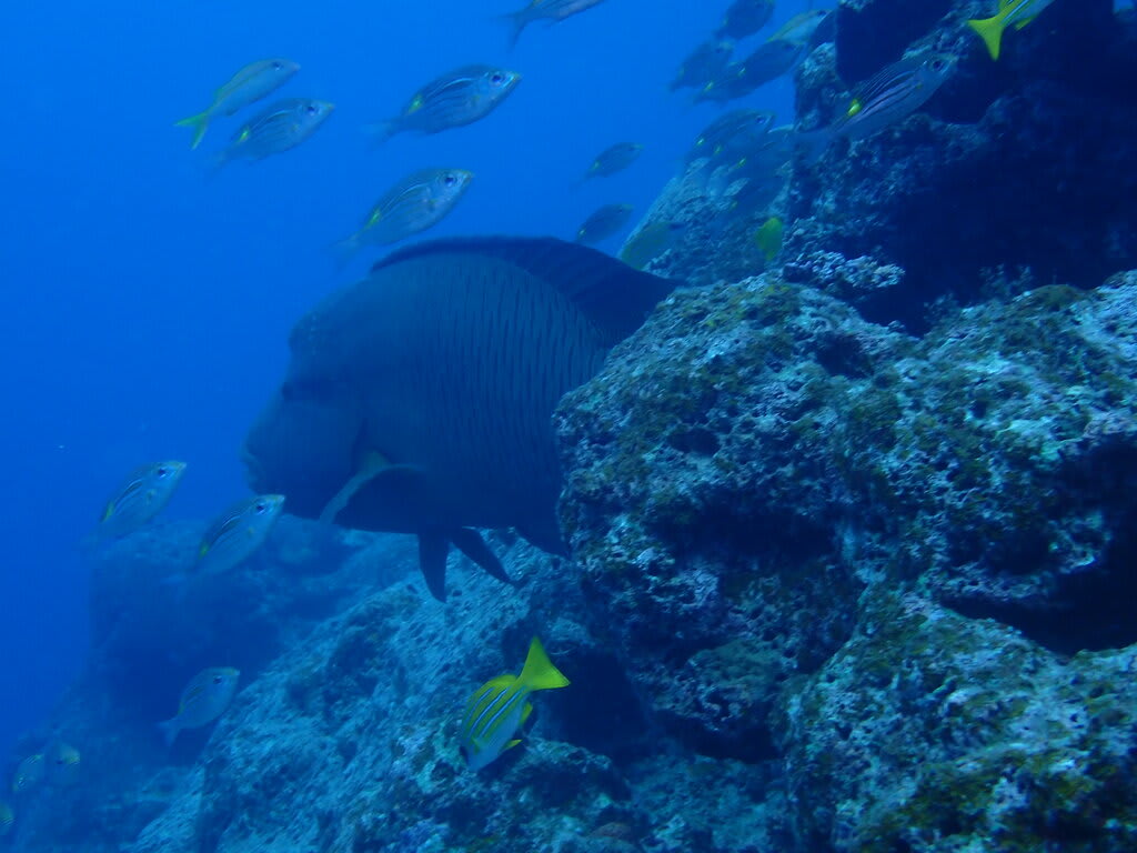 いつもの渦を巻くようなバラクーダの群れは見れませんでした。