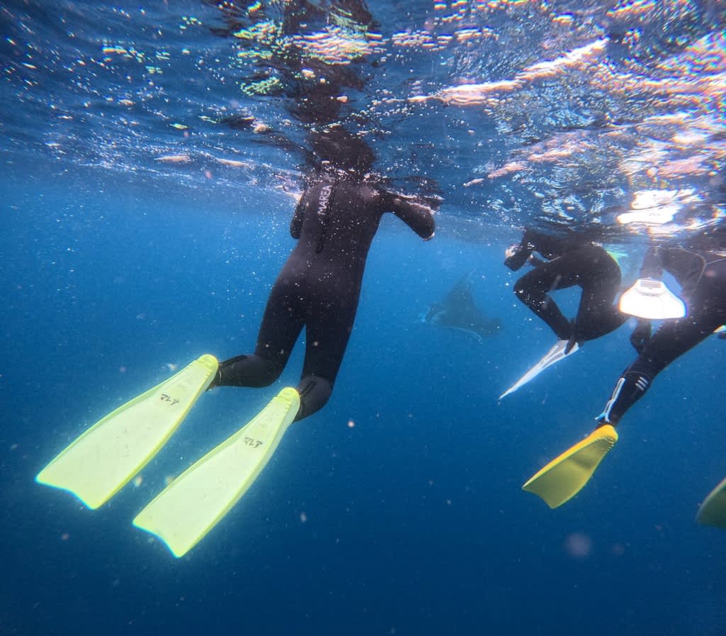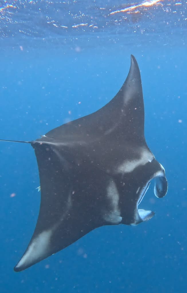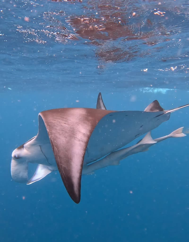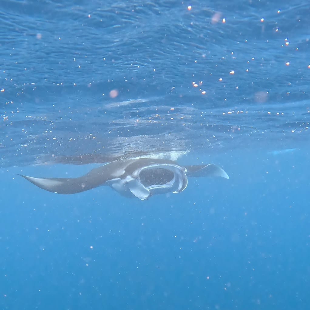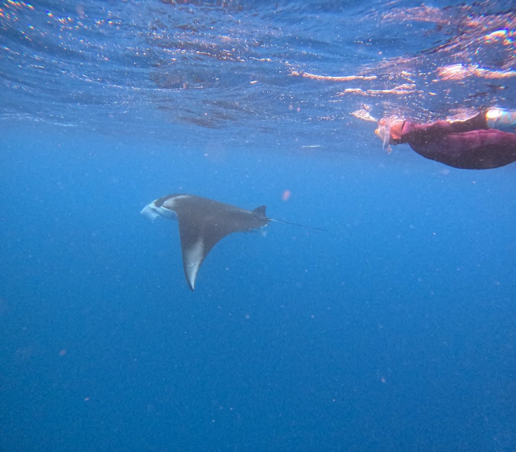 体があったまったランチの後に、船の上からマンタの尾ひれを発見!!