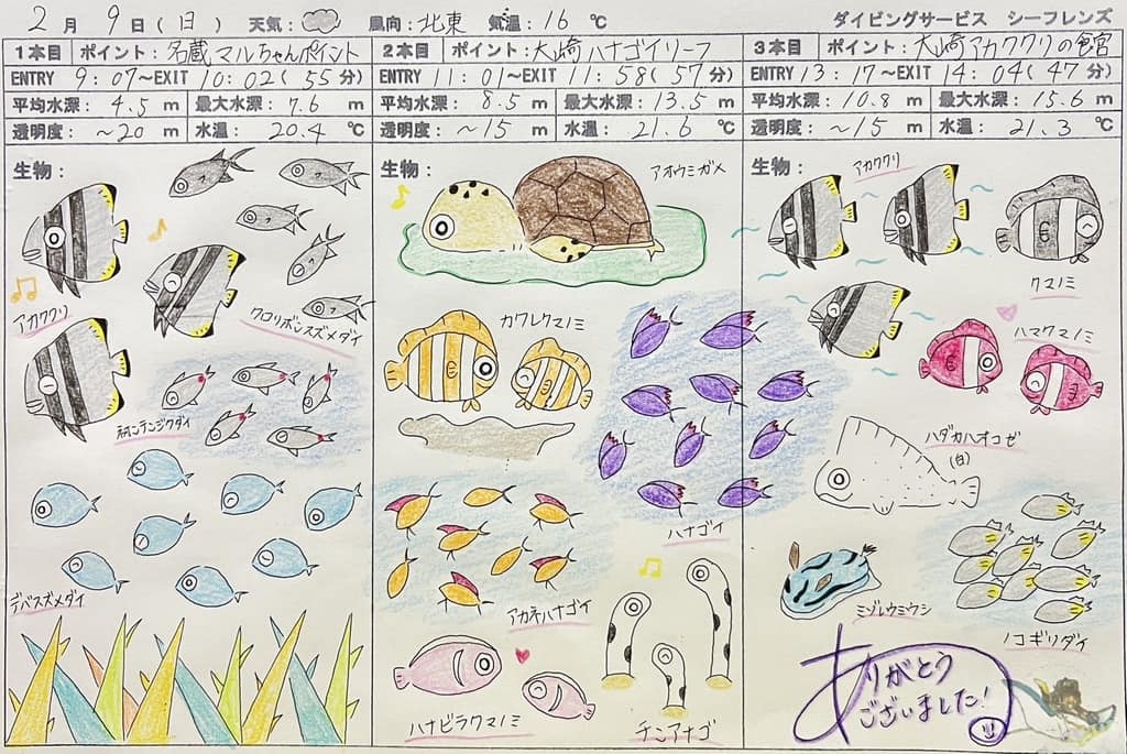 それぞれで、マンタが見れたり、ニシキテグリが見れたりと、