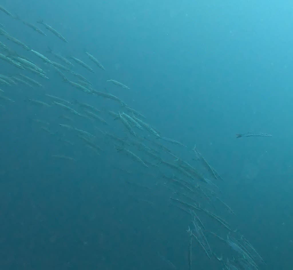 コガネシマアジとオオメカマスの群れ!
