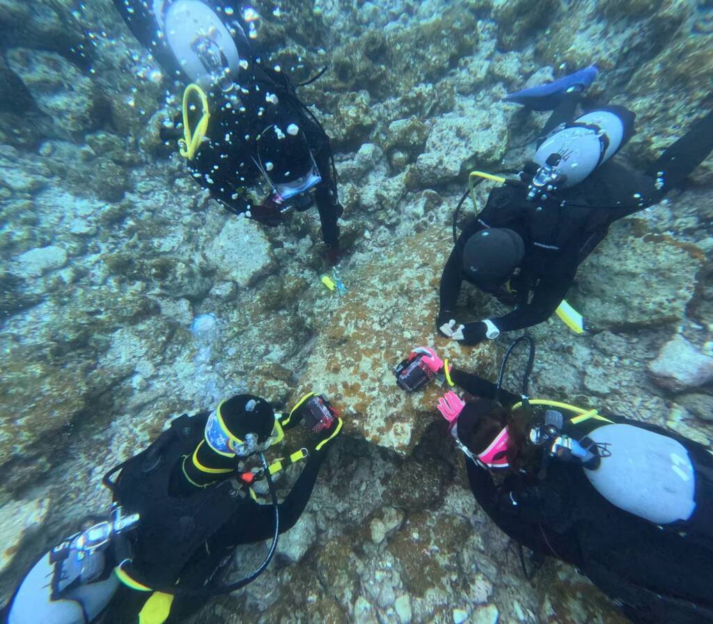 そして、その小さな小さなウミウシを、大きな人間が囲んで、パシャリ。