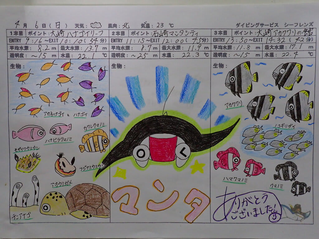 大崎→石崎→大崎のコースで、2本目にマンタを見ました。