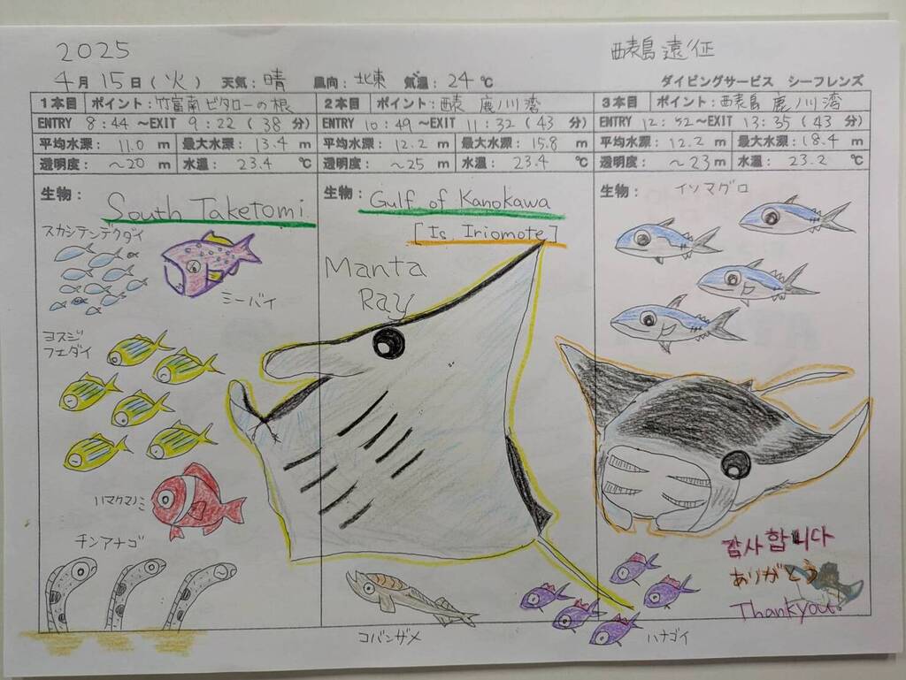 今日は、1枚のマンタだったので、「マンタマンタ」ではなかったですね。
