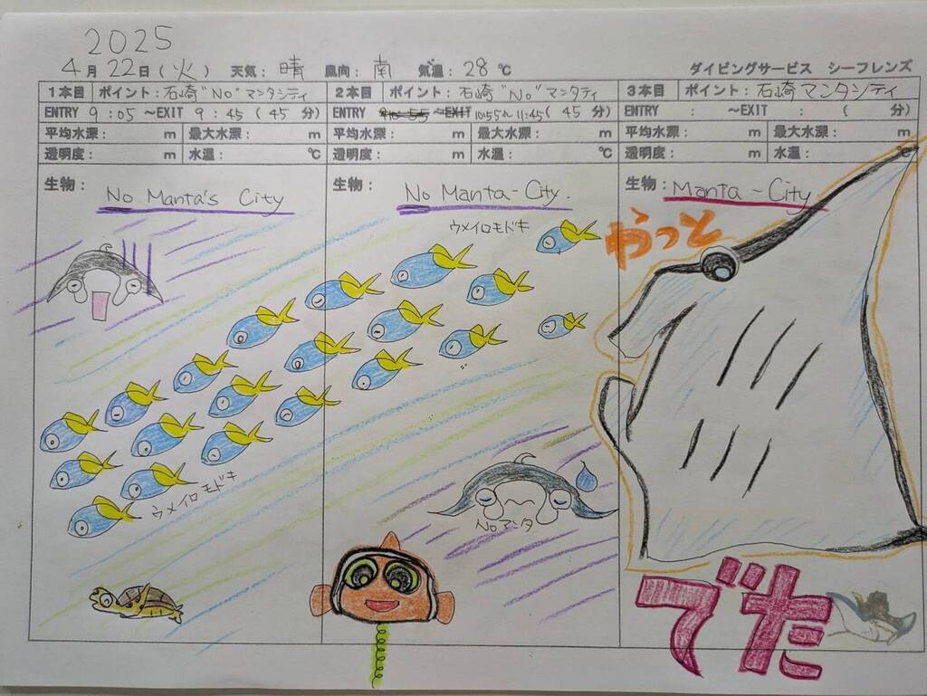 ダイブ1,ダイブ2ともに「マンタシティ」で、「NOマンタシティ」