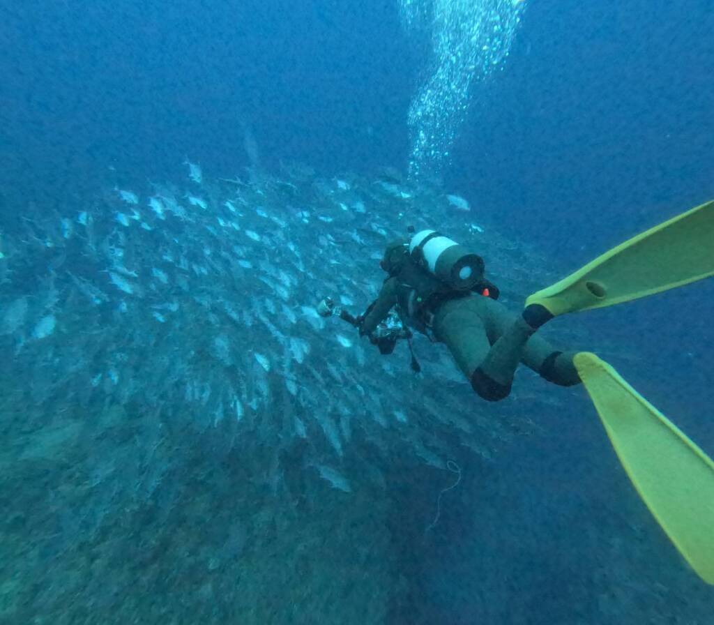 ドリフトダイビングでは、ギンガメの群れを見てきました。