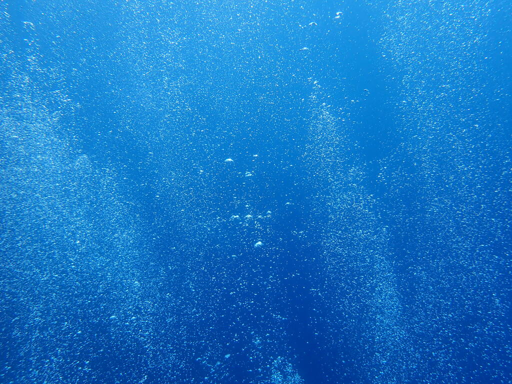 ダイバーの泡カーテンを横目に壁沿いを泳ぎます!