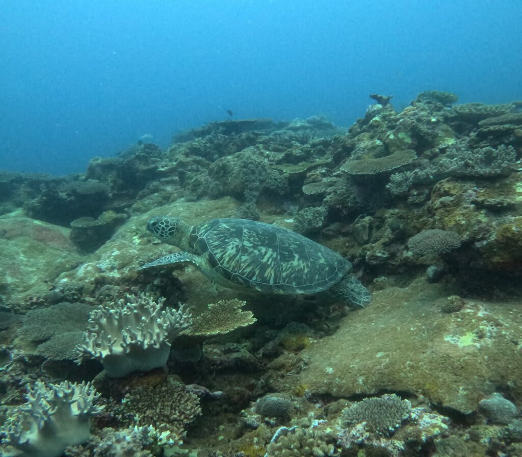 そこにいるはずのカメが、息継ぎで水面に行ったり、