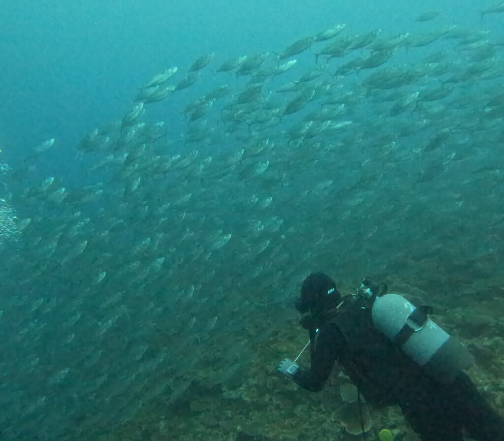 魚の大群が一瞬で通り過ぎたり、