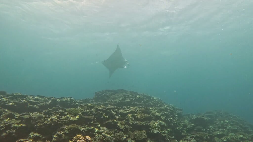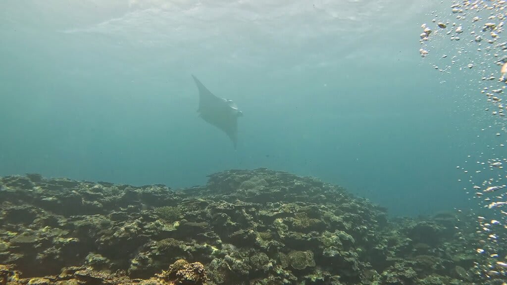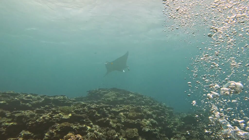 第1チーム、第2チームが安全停止を終えた直後に、マンタ登場。