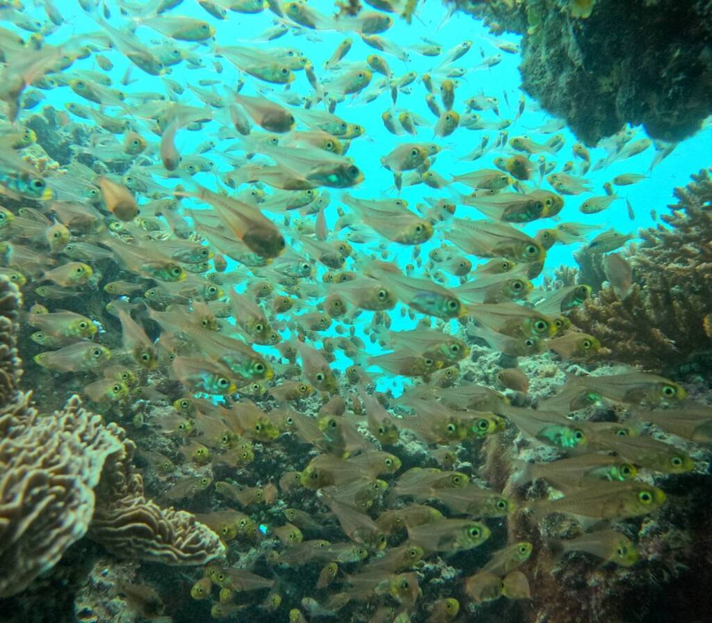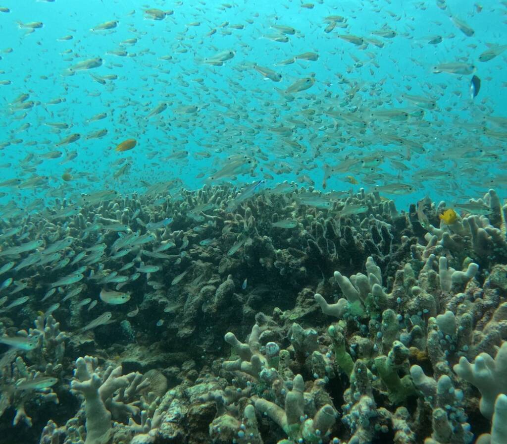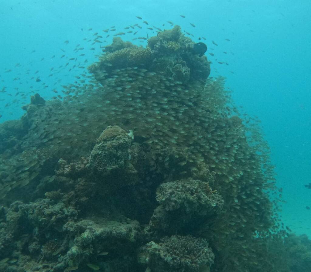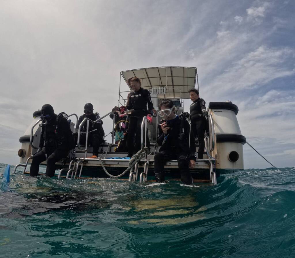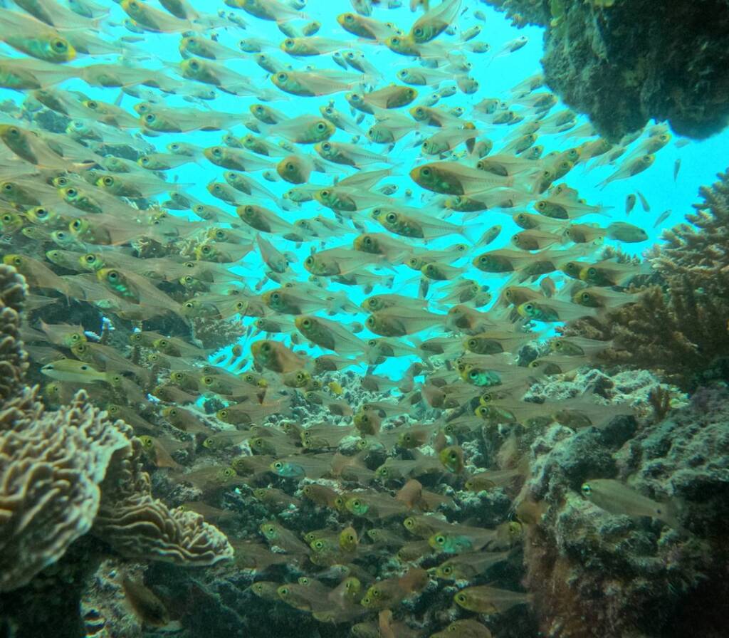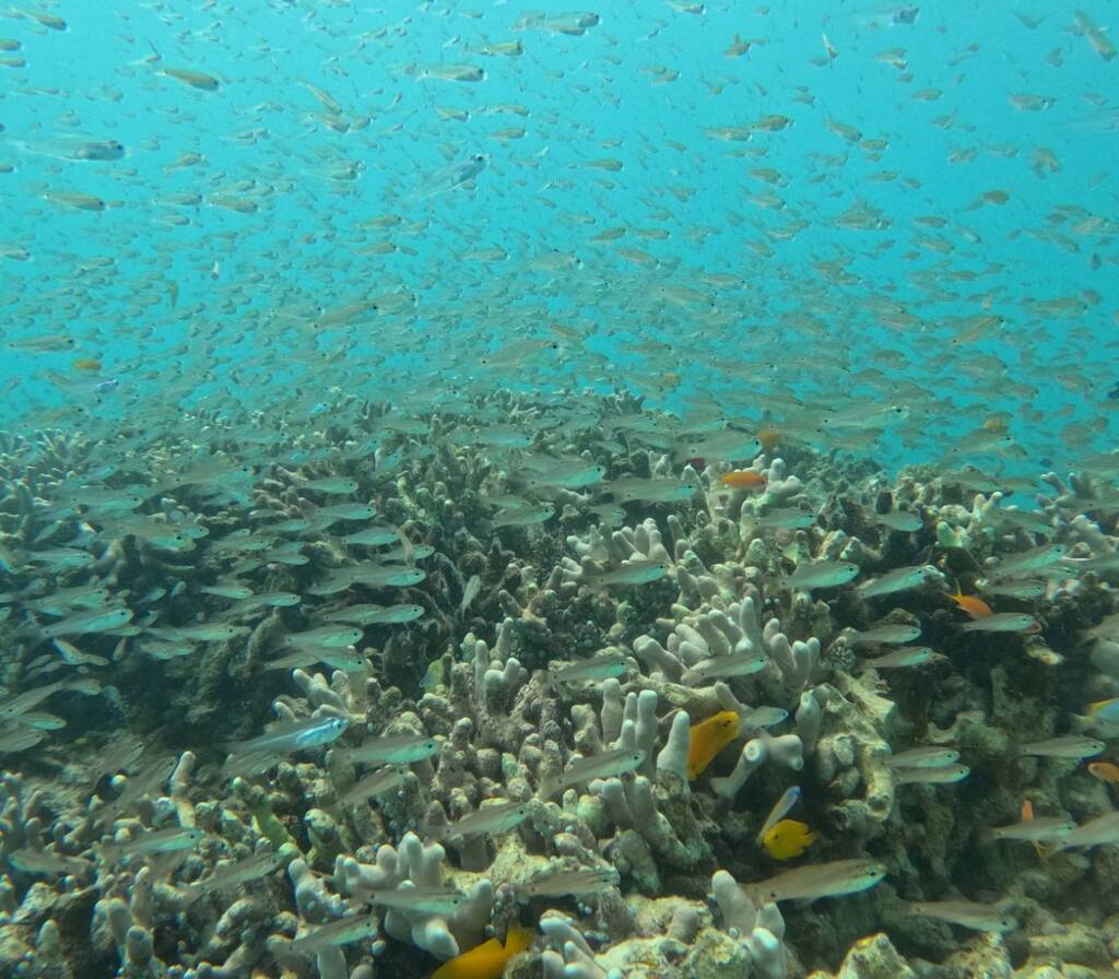 サンゴ礁で波が砕かれて、水面が比較的穏やかな場所です。