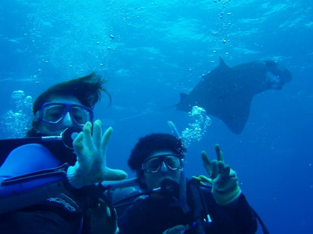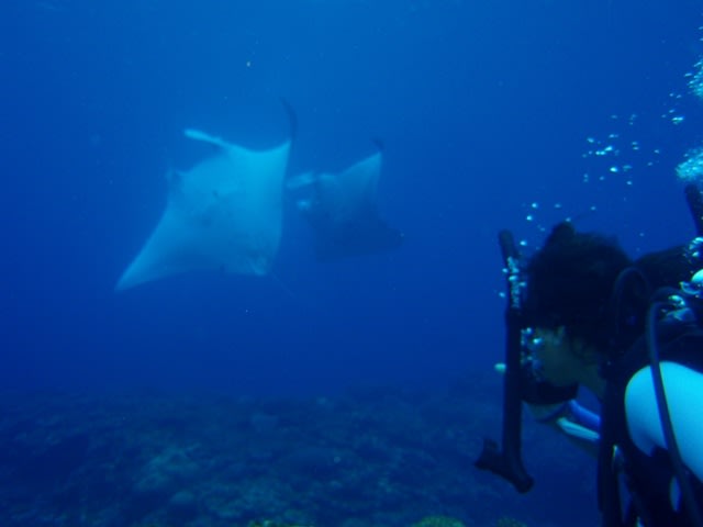 全員がエントリーするとすぐ、遠くの方にマンタがいたので、