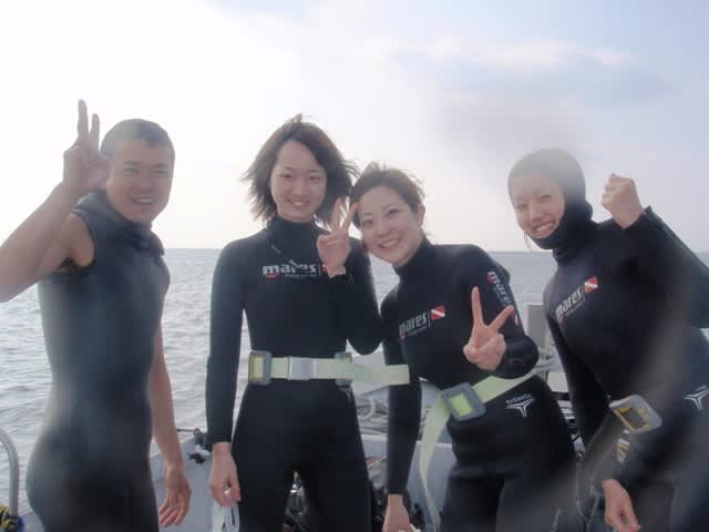 今日は、昨日の寒いなか、夕方店にガイドブックを片手に、明日体験ダイビングできますか?っと、突然の飛び込み三人組!!
