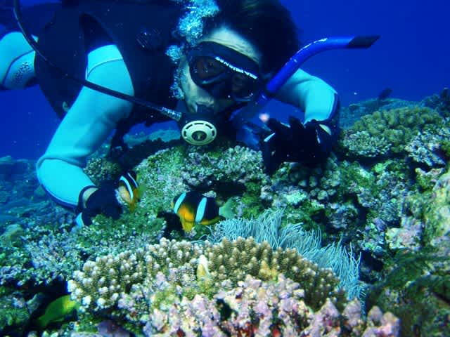 じっくりサンゴを見たり、魚の群れと遊んでみたり♪