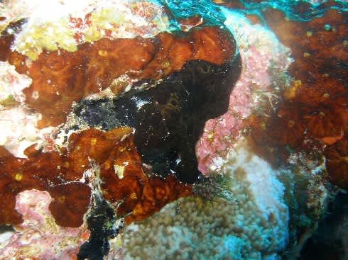 最初のイソバナのポイントでは大きなサメが穴の中で寝てたり
