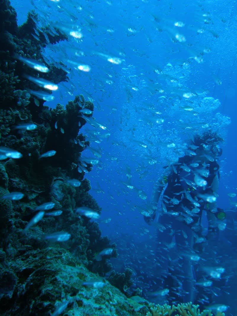 スカシテンジクダイの1万匹の群れに突進して遊びました♪