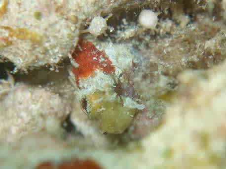 可愛いイシガキカエルウオが、なにかつまみ食い???
