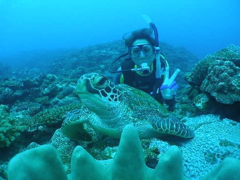 人なつっこい海ガメ登場ですo(^o^)oワォ!