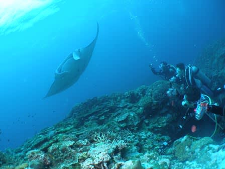 しばらくすると2枚のマンタがゲスト頭上を通り皆さんニコニコ!