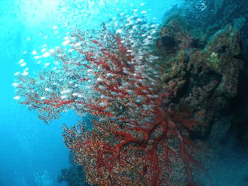 浅場には、アカネハナゴイの群れがとっても綺麗で