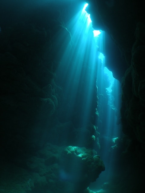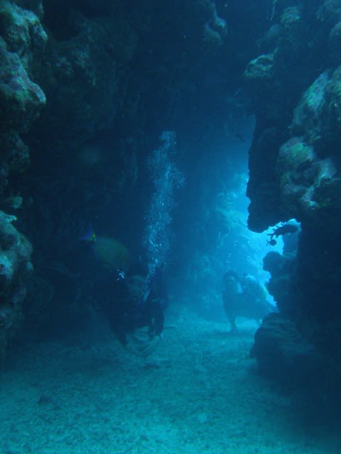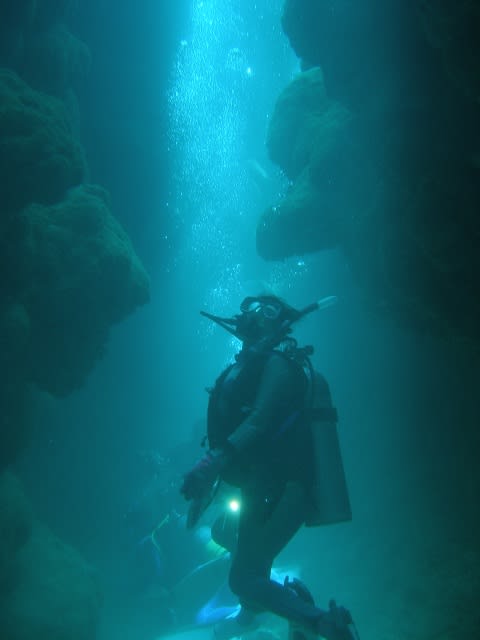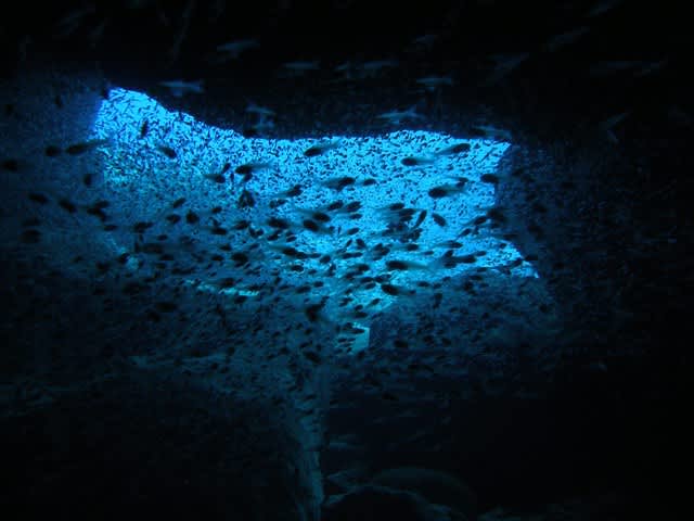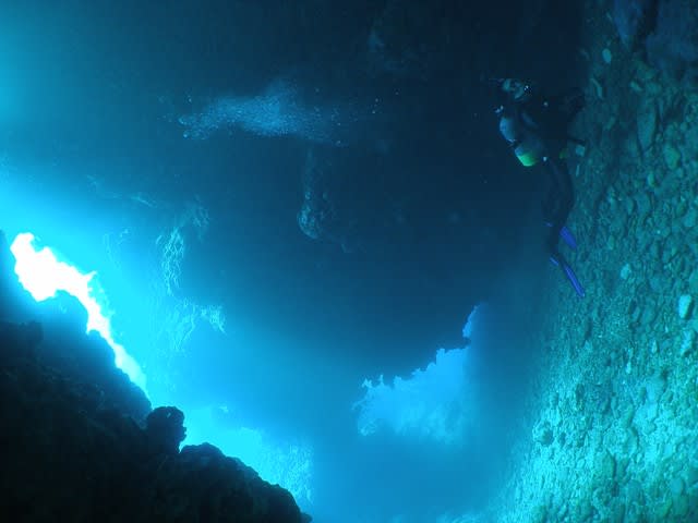 サンゴ畑を浮遊して少し小さめなケーブの入り口をくぐると・・・