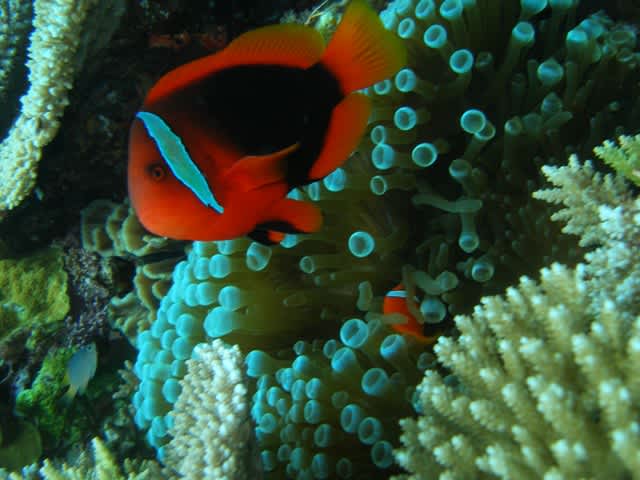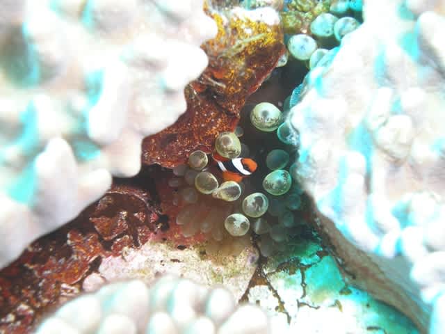 そしてサンゴに目をやれば中に住んでるカニなども見れたり
