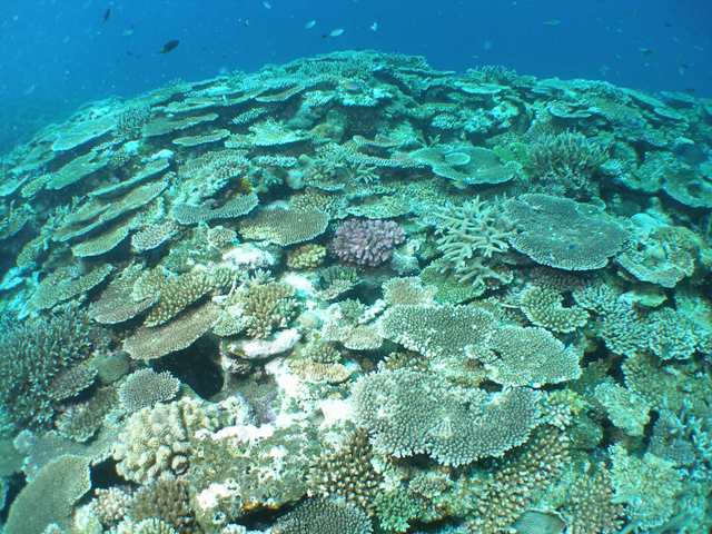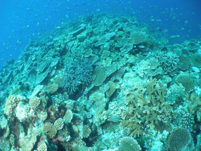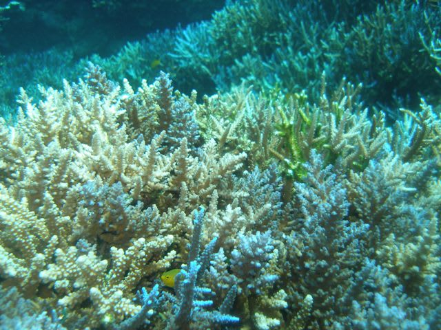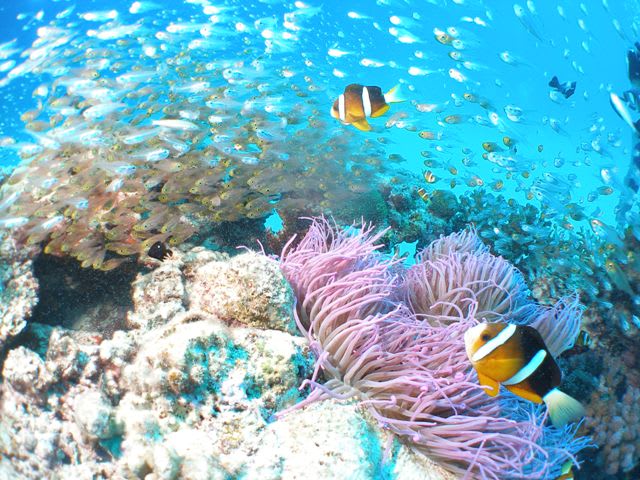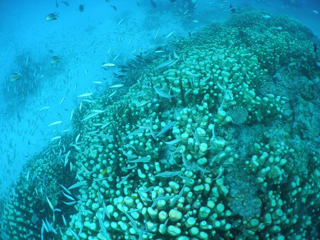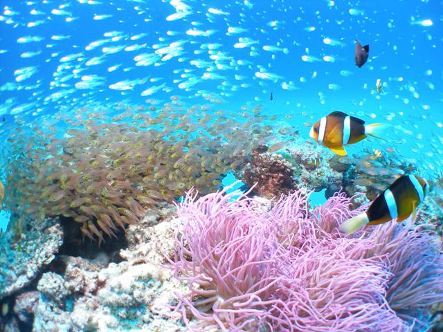 そのサンゴの上に群がる綺麗なスズメダイやグルクンの子供