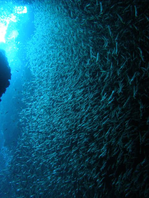 アーチの中に、数え切れないくらいの魚の群れ!群れ!群れ!