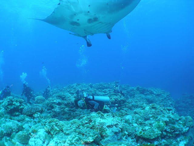 3匹のマンタがゲストの頭上を行ったり来たりでスクランブル4回目のフジワラさん