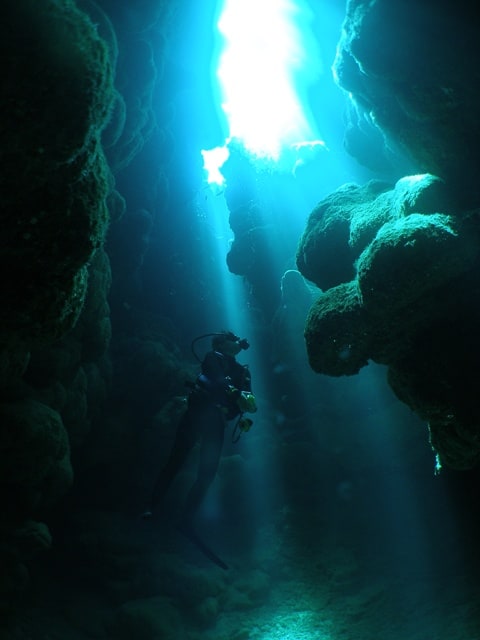 癒しのサンゴ畑を抜けると複雑に入り組んだケーブやトンネル
