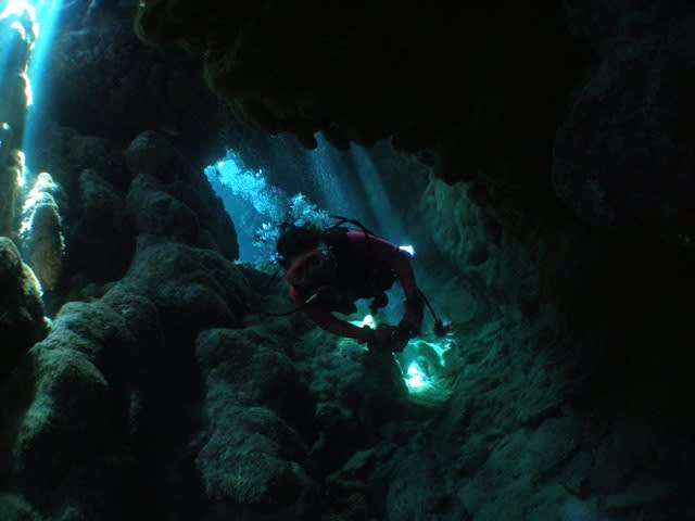 岩の割れ目には大きなイセエビがたくさん住んでます(よだれモノですよ)