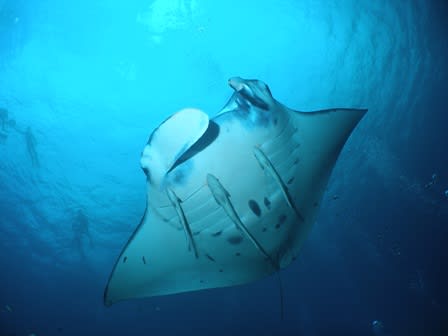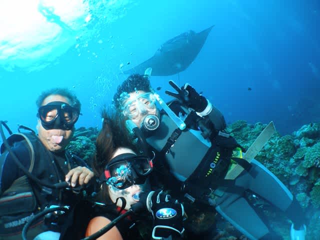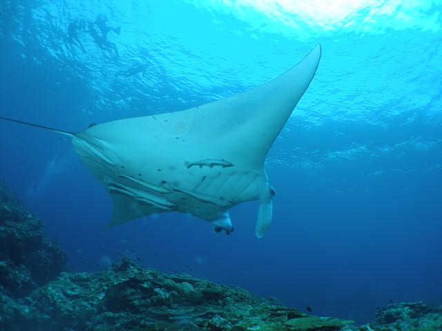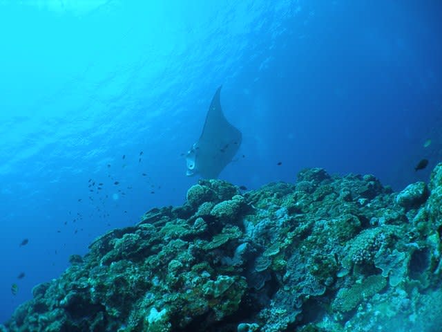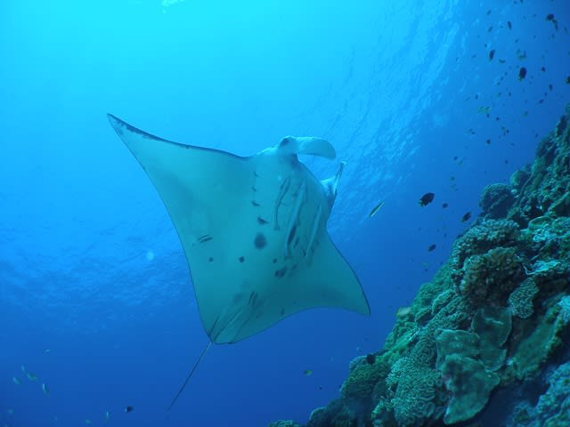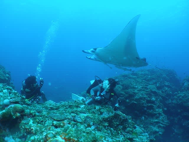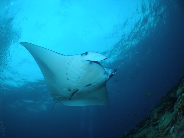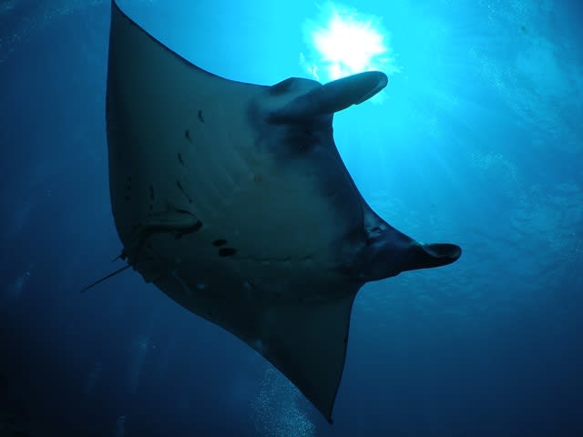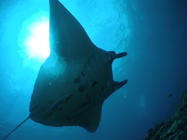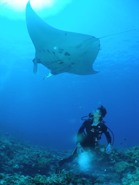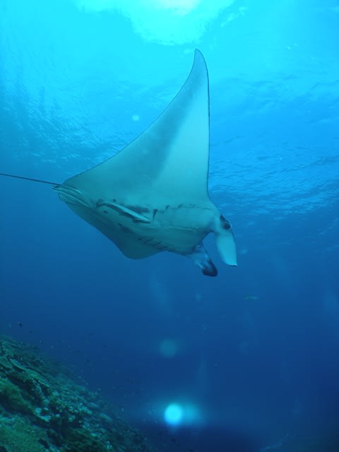 目の前をかすめるように泳いでいくマンタに感激~~~