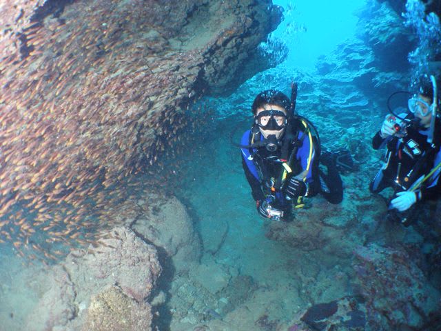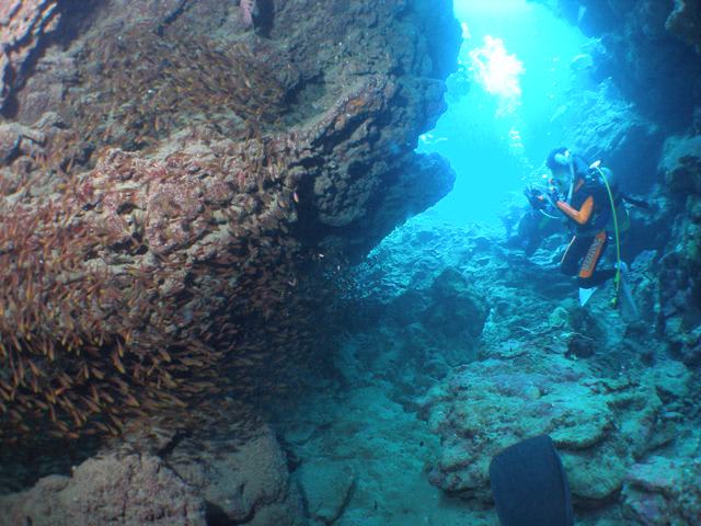 ケーブ入り口では、数が減ったもののキンメも群れてイイ感じ