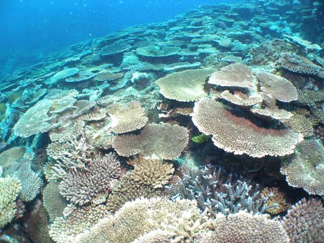 根の上を泳ぐのも緊張してしまうぐらいのサンゴ畑を浮遊して