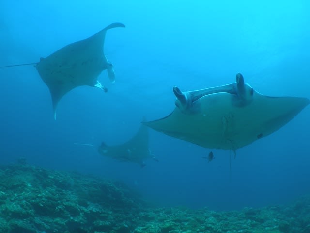 透明度はイマイチでしたが、一度に何匹ものマンタが現れて頭の上でグルグル!